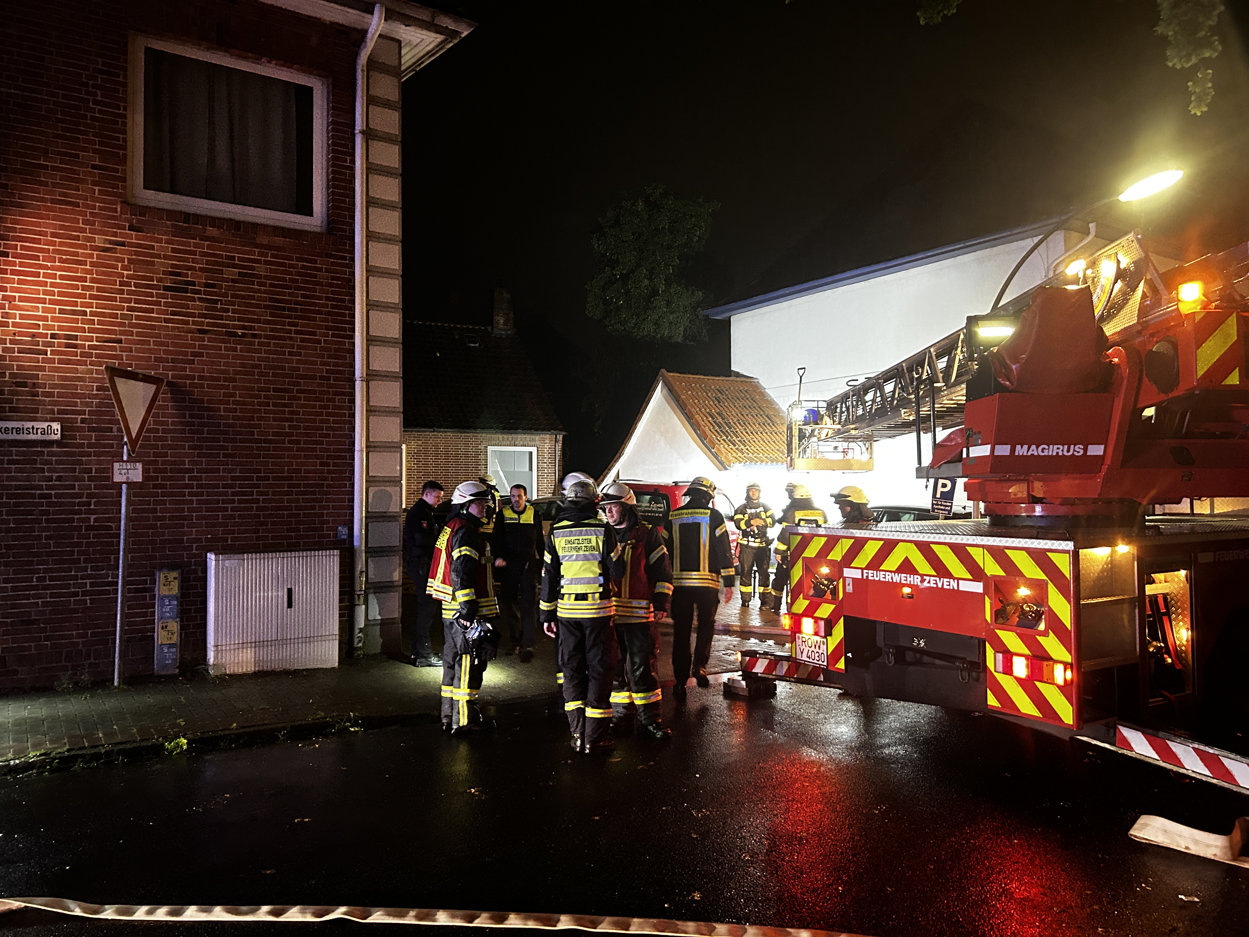 (jt) Am Abend des 07. Oktober wurden die Feuerwehren Zeven, Heeslingen, Brauel und Brüttendorf, sowie der Rettungsdienst und die Polizei in die Labesstraße nach Zeven alarmiert. Es wurde ein Feuer in einem Mehrfamilienhaus gemeldet, in dem sich zu diesem Zeitpunkt noch mehrere Menschen aufgehalten haben. Der stellvertretende Ortsbrandmeister der Feuerwehr Zeven traf als erstes an der Einsatzstelle ein und klingelte und klopfte umgehend an allen Wohnungstüren des Mehrparteienhauses um die Bewohner zu warnen und aus dem Gebäude zu bewegen. Umgehend wurden mehrere Trupps mit Atemschutzgeräten in das Gebäude geschickt um nach weiteren Personen zu suchen und um den Brandherd zu lokalisieren. Durch die Atemschutztrupps konnten bei der Durchsuchung der Wohnungen keine weiteren Personen gefunden werden. Auch der Brandherd konnte schnell ausfindig gemacht werden und das Feuer zügig gelöscht werden. Es brannte in einer Wohnung im 2. Obergeschoss. Durch die enorme Hitzeentwicklung in der Wohnung sind einzelne Fensterscheiben geborsten. Ein Übergreifen auf das Dach und andere Wohnungen konnte durch die Feuerwehr, die mit insgesamt 55 Einsatzkräften vor Ort war, erfolgreich verhindert werden. 3 Bewohner des Hauses wurden bei diesem Brand verletzt und vom Rettungsdienst behandelt. Einer von ihnen wurde zur Weiterbehandlung ins Krankenhaus transportiert. Die betroffene Wohnung ist bis auf weiteres unbewohnbar, alle anderen Bewohner konnten am selben Abend wieder in ihre Wohnungen zurückkehren. Zur Schadenshöhe und Brandursache können seitens der Feuerwehr keine Angaben gemacht werden. Mehrere Verkehrsteilnehmer befuhren, trotz Absperrmaßnahmen, mit PKW, Fahrrädern und E-Scootern die Einsatzstelle. Durch diese Handlungen wurden nicht nur die Einsatzkräfte gefährdet, sondern auch die Personen selbst, da eine Einsatzstelle immer große Gefahren birgt, die oft nicht oder nur schwer ersichtlich sind. Die Verkehrsteilnehmer wurden durch Führungskräfte der Feuerwehr und durch die Polizei auf ihr Fehlverhalten aufmerksam gemacht und der Einsatzstelle verwiesen.