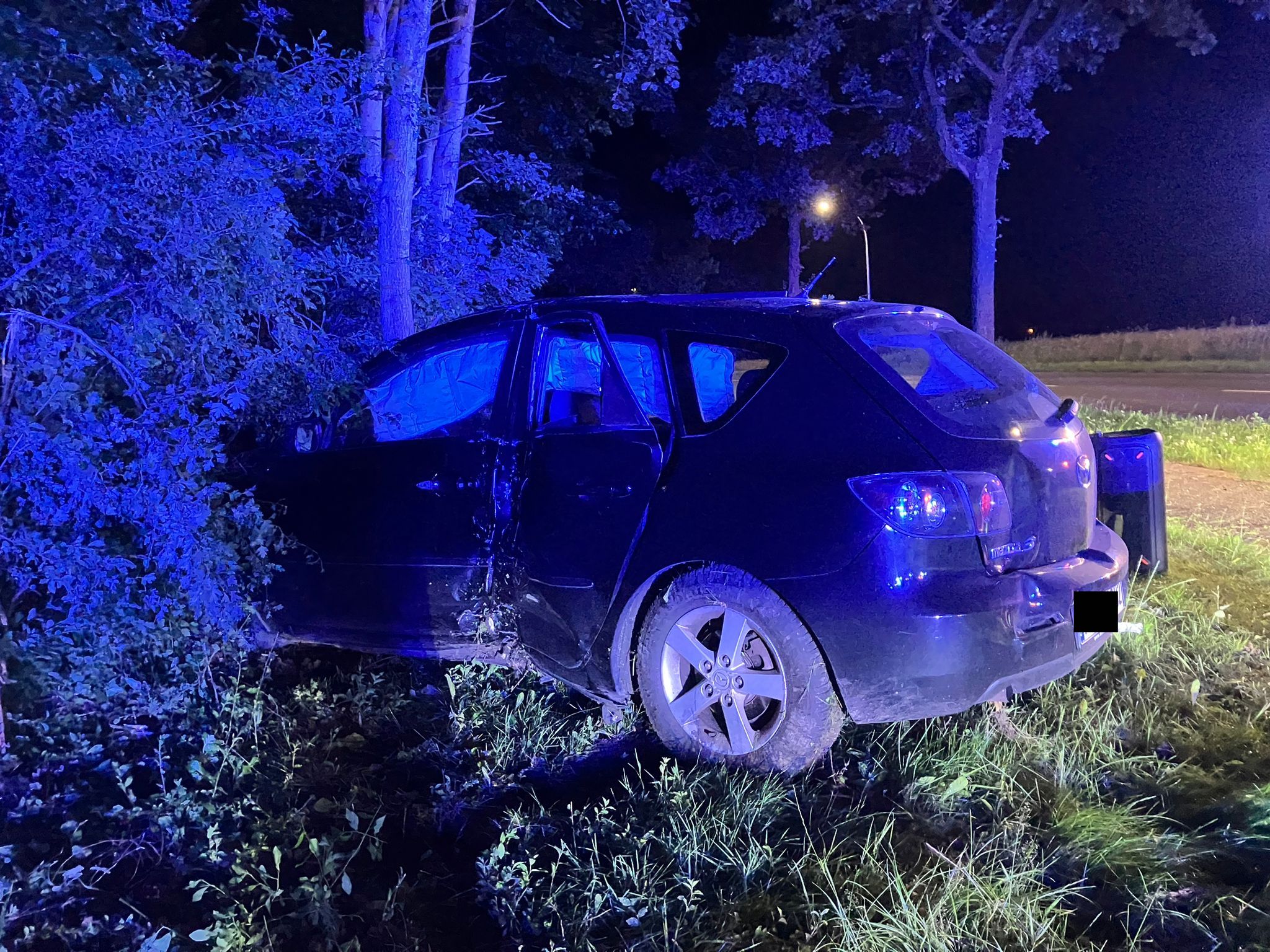 Die drei Insassen eines Mazda sind, während sie vor der Polizei geflüchtet sind, von der Fahrbahn abgekommen und gegen mehrere Bäume geprallt.