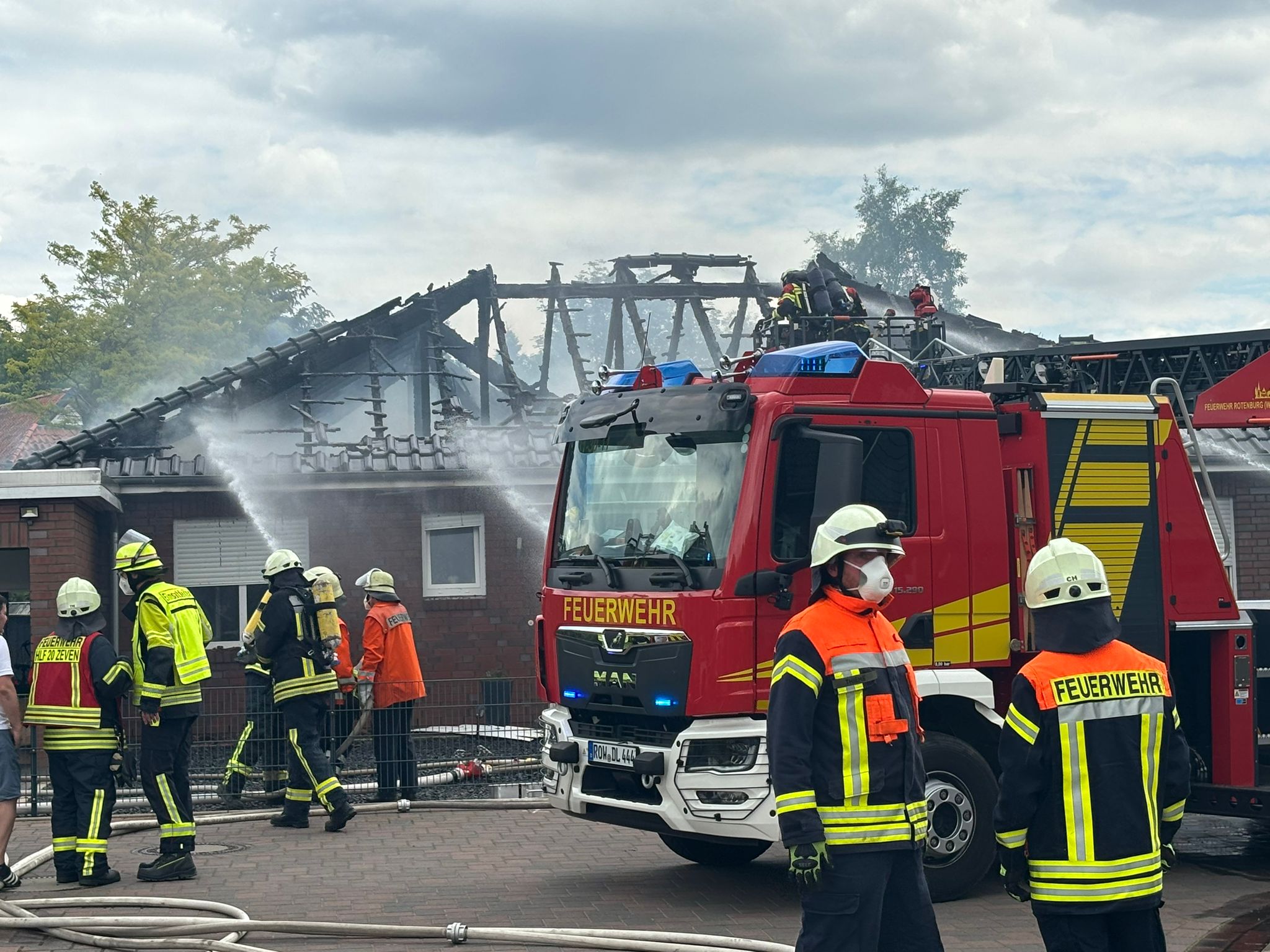 Einsatzbericht Gegen 14.10 Uhr am Samstagnachmittag geriet aus ungeklärter Ursache ein Einfamilienhaus in Zeven im Ibisweg in Brand. Bei Eintreffen der ersten Feuerwehren stand der Dachstuhl des Bungalows in Vollbrand. Umgehend musste das Alarmstichwort erhöht werden. Demnach wurden weitere Kräfte zur Einsatzstelle alarmiert.