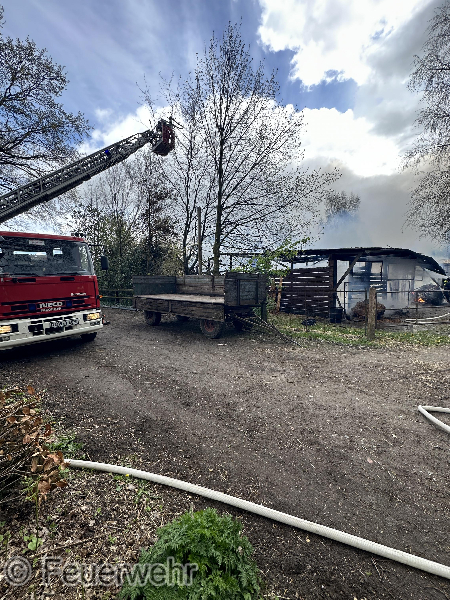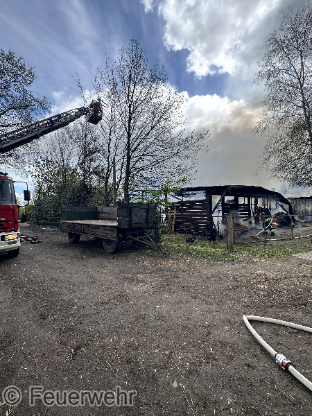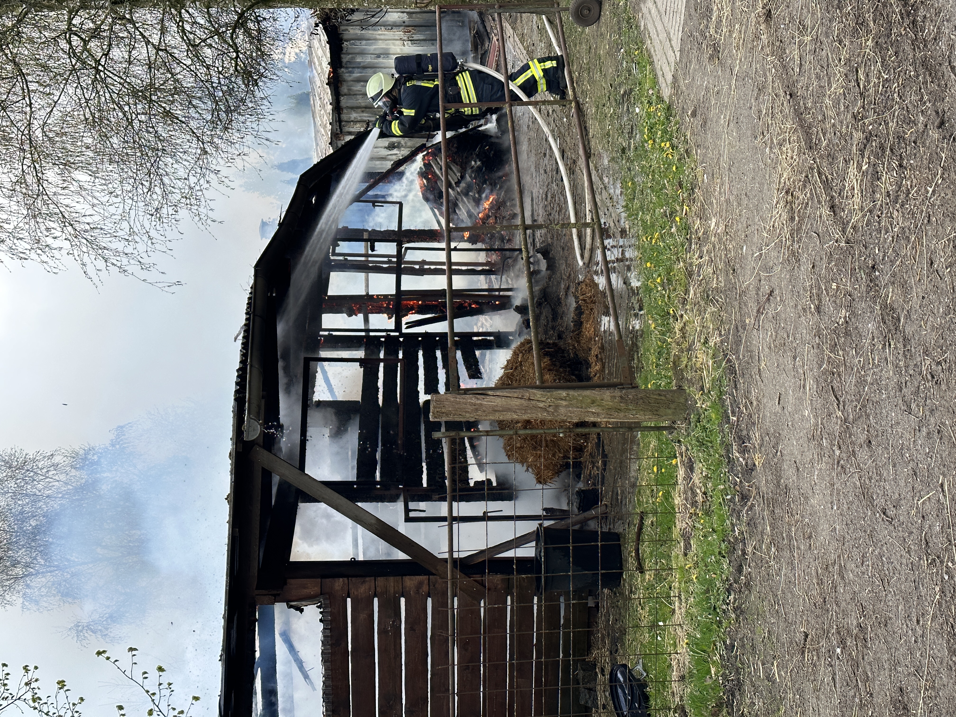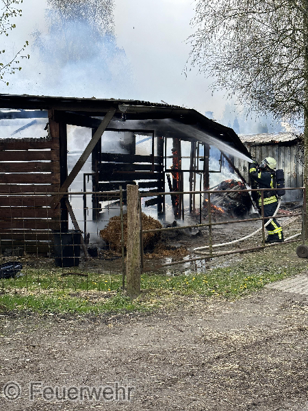Ortsrand. Bei Eintreffen der Freiwilligen Feuerwehren stand der Stall bereits in Vollbrand. Unter