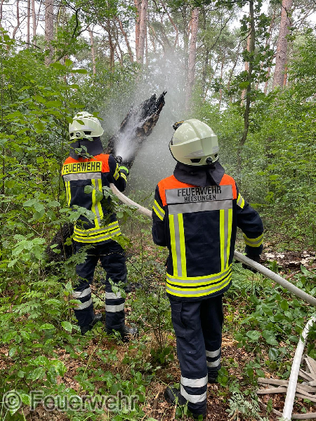 Der nächste Einsatz ließ nicht lange auf sich warten. Wir wurden gestern Nachmittag zu einem brennenden Baum im Ortsteil Offensen alarmiert. Mit unserem Löschgruppenfahrzeug machten wir uns auf den Weg zum Einsatzort und konnten die gemeldete Lage bestätigen. In einem Waldstück brannten die Überreste eines abgeknickten Baumes und das Tanklöschfahrzeug wurde aus Sicherheitsgründen und keiner Wasserentnahmestelle in der Nähe nachalarmiert. Um kein Treibholz zu produzieren, wurde der Baum mit wenig Wasser abgelöscht. Der Löschrucksack konnte ebenfalls das erste Mal eingesetzt werden.