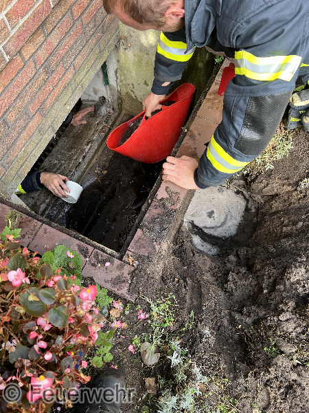 Zum zweiten Einsatz am Wochenende wurden wir am Sonntag um 12:56 Uhr alarmiert. In einem Keller sollte laut erster Meldung Wasser laufen, was sich auch Vorort bestätigte. Da wir dies erst für angesammeltes Regenwasser gehalten haben, wurde der Ablauf provisorisch abgedichtet. Die Problemstelle wurde beobachtet und es konnte nur eine kurzzeitige Verbesserung festgestellt werden. Das angesammelte Wasser wurde abgesaugt und parallel dazu wurde der Auslöser gesucht. Da der Boden im weiteren Verlauf begann abzusacken, war dann relativ schnell klar, dass es sich um einen Wasserrohrbruch handeln muss. Die Wasserzufuhr wurde durch uns für den betroffenen Haushalt unterbrochen, wodurch auch kein weiterer Austritt ausfindig gemacht werden konnte. Die Stadtwerke Zeven wurden daraufhin verständigt. Das angesammelte Wasser wurde durch uns entfernt.